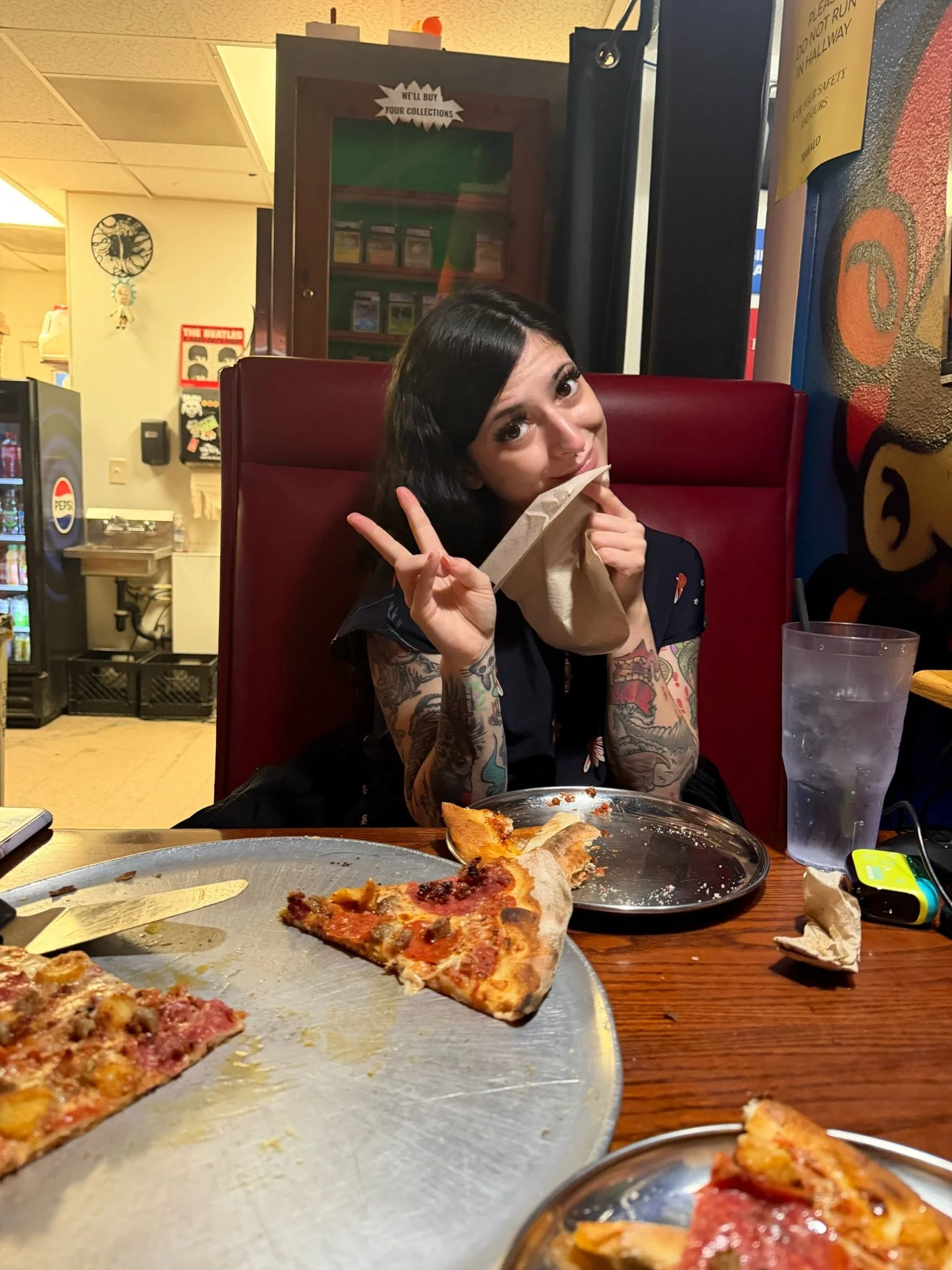 We popped over to a local pizza joint called Antics Pizza, and had no idea what we were in for. As you walk in, the left-hand side of the parlor is lined with computers, gaming chairs, and about 10 children cramming around them as they play Xbox games. Fortnite and Minecraft were on multiple screens, as the kids were cheering each other on, the windows covered in posters and art.