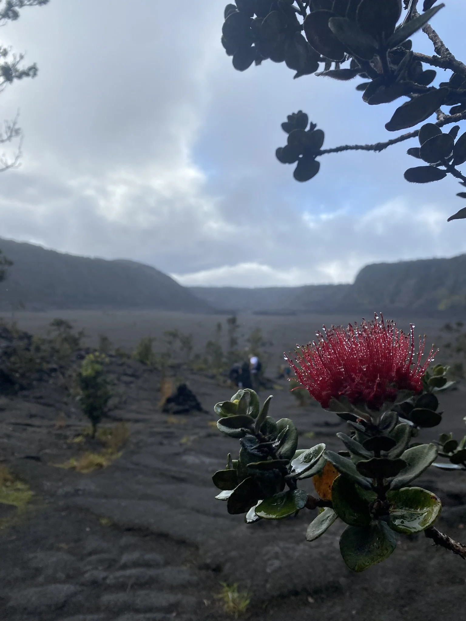 Locals call this sound kanilehua, roughly translating to “the rain that makes lehua flowers rustle.” The lehua flower grows all over Hawaii, but the interesting thing about that fluorescent pink, spiky pom-pom of a flower is its ability to grow in volcanic ash. Between the cracks of Kilauea, lehua flowers bring life to the black, barren areas, sprinkled around the volcano's aftermath like silent warriors.